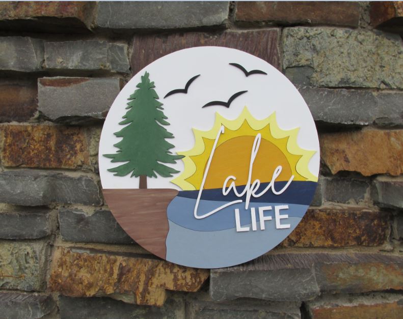 This is a beautiful overlay, it brings to mind lazy, relaxing days at the lake. The water lapping softly, the sun setting, the smell of pine trees and the sounds of calling birds overhead. This will make a wonderful addition to your lake home or a cherished gift as well as a popular addition to your craft store or show products.
