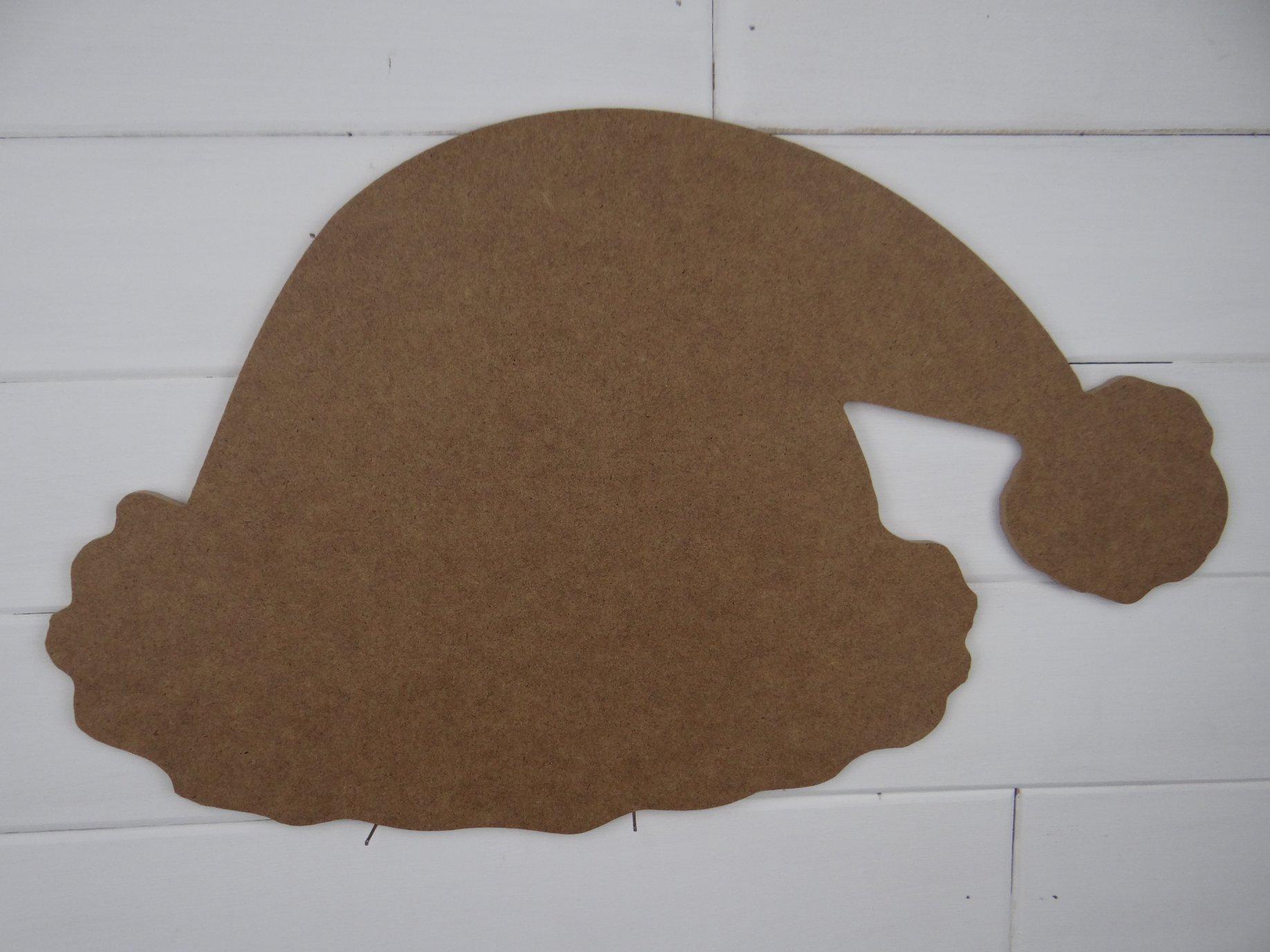 A Santa hat shape, use for a door hanger or the smaller sizes can be used for wreaths or replaceable HOME sign shapes.